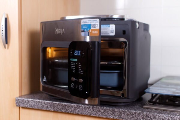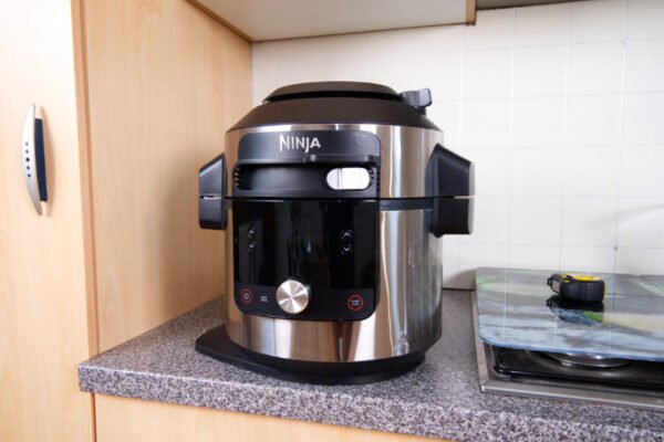 Le Ninja Crispi est un airfryer au concept intéressant, mais à double tranchant : il peut se révéler pratique et innovant sous certains aspects, mais sa forme n’est pas facile à intégrer dans une armoire. De plus, son design implique d’entièrement retirer la partie chauffante pour secouer les aliments.Comme autres points faibles, il n’offre que 4 programmes, sa température n’est ni réglable ni indiquée, ses boutons ne sont pas très réactifs et son mode maintien au chaud doit être enclenché manuellement. Nous regrettons également l’absence de signal sonore à la mi-cuisson, et des performances décevantes avec la cuisson de frites.